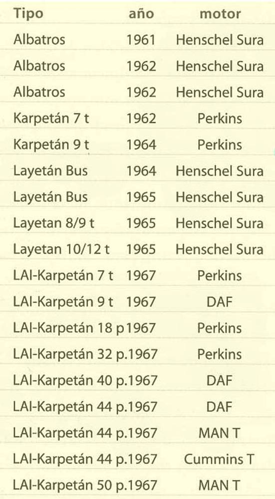 y lujo), y camiones de 9 y 12 t. En 1967 se abandona Layetan